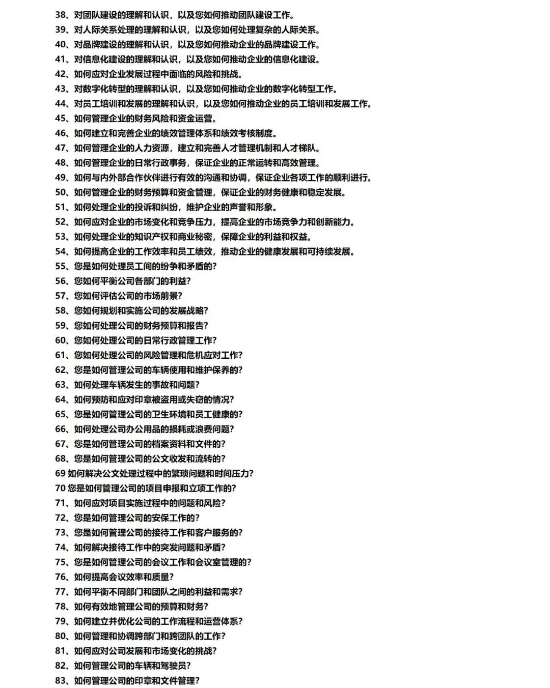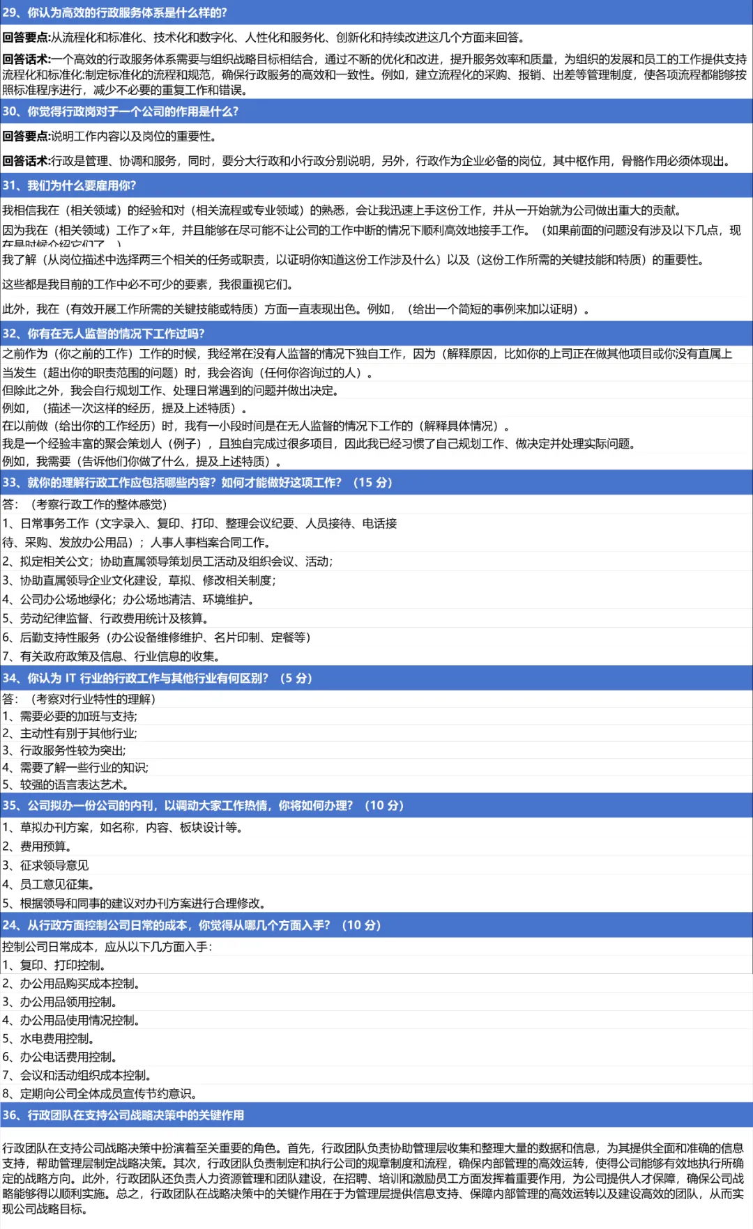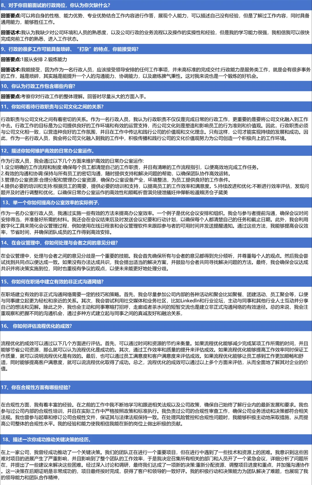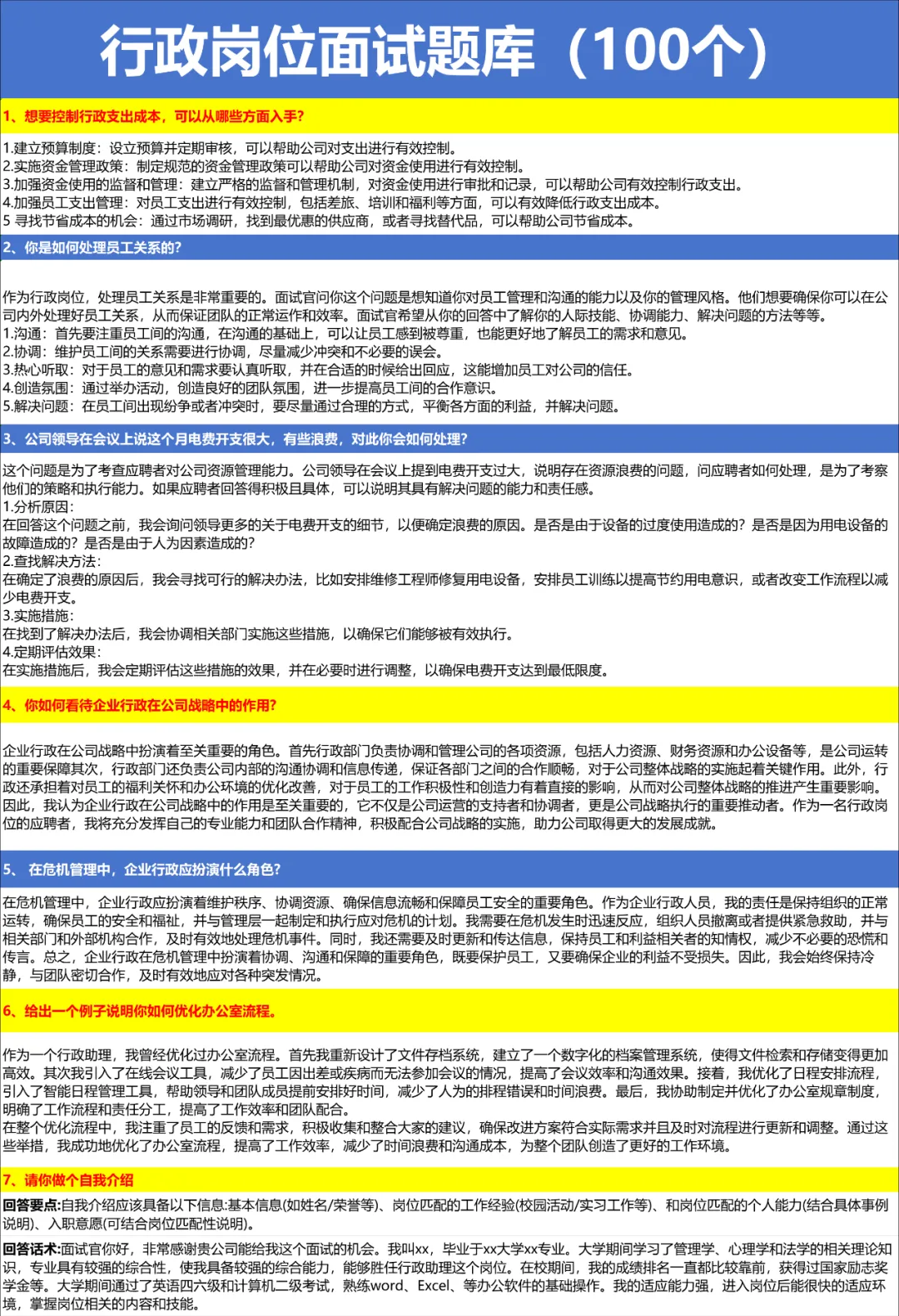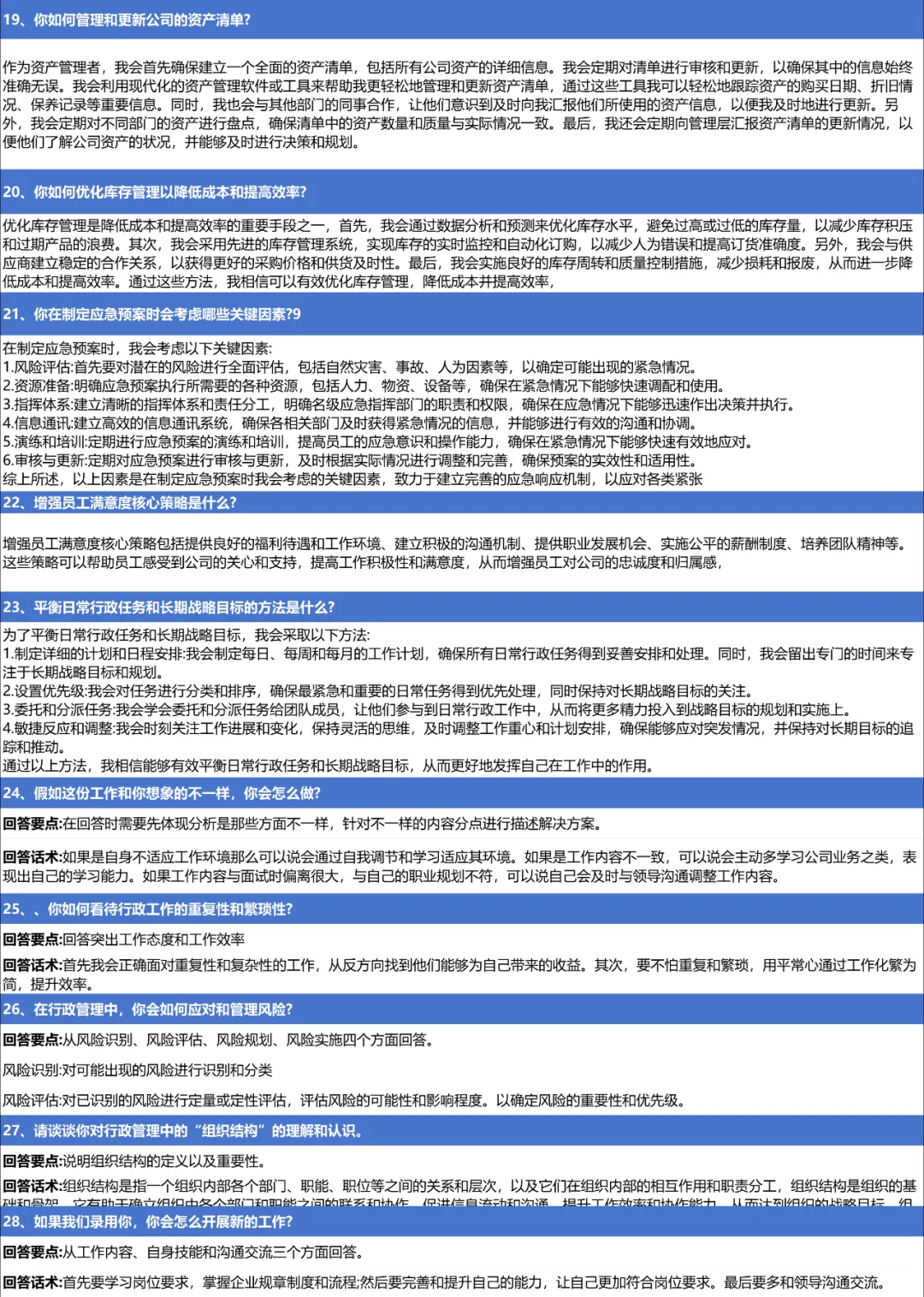 在行政岗位的面试过程中,一套完整且针对性的面试题库不仅可以帮助面试官全面了解候选人的综合素质和专业能力,还可以为候选人提供一个公平、公正的评价标准。以下是行政面试题库及其重要性的一些分析: