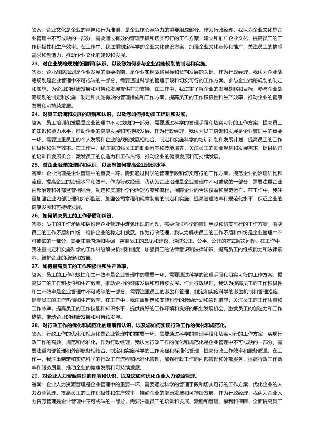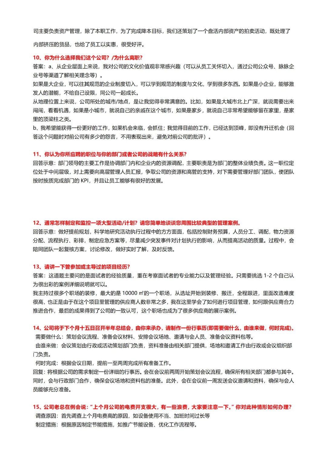 一、行政面试题库