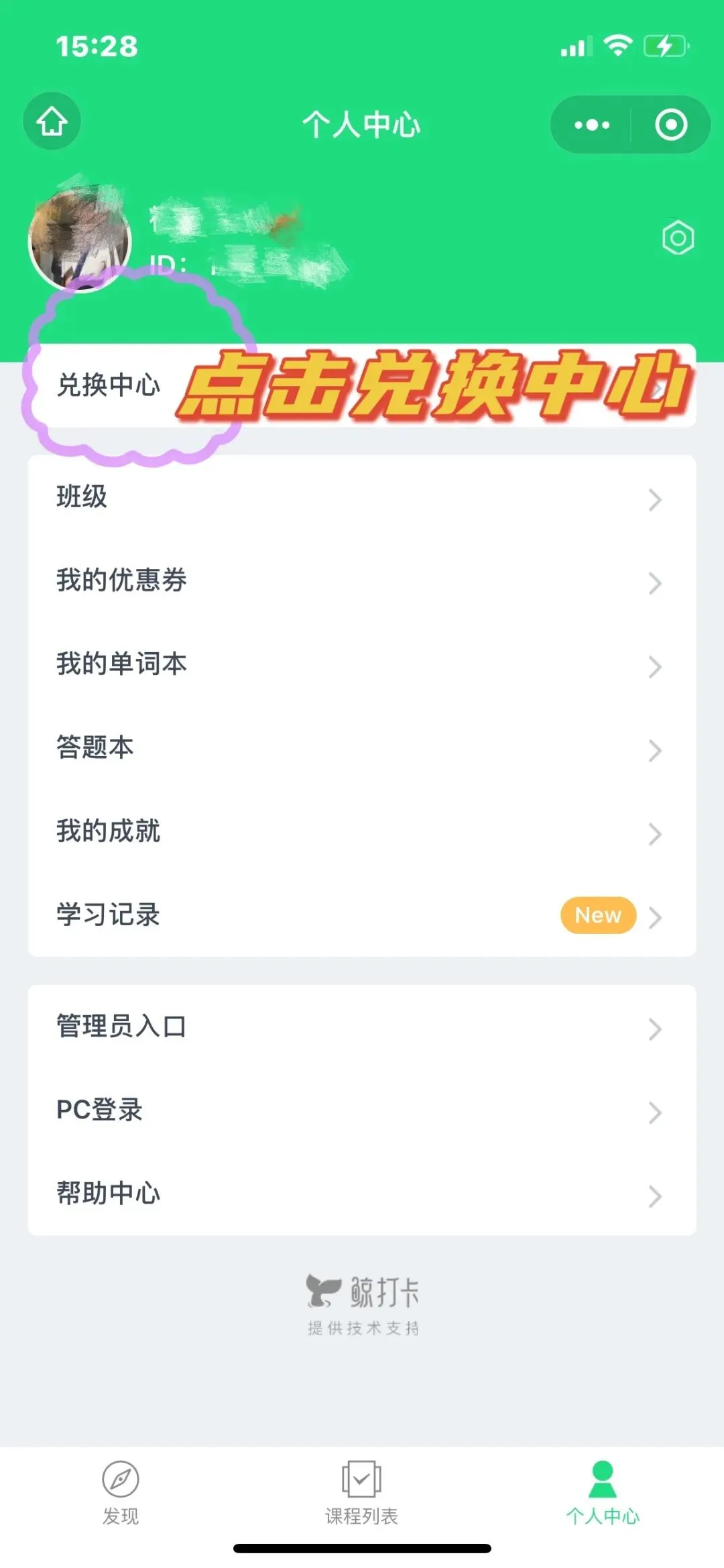 ②打开小程序,点击“个人中心”-“兑换中心”,输入商品订单详情中复制的卡密,点击课程即可进入答题界面;