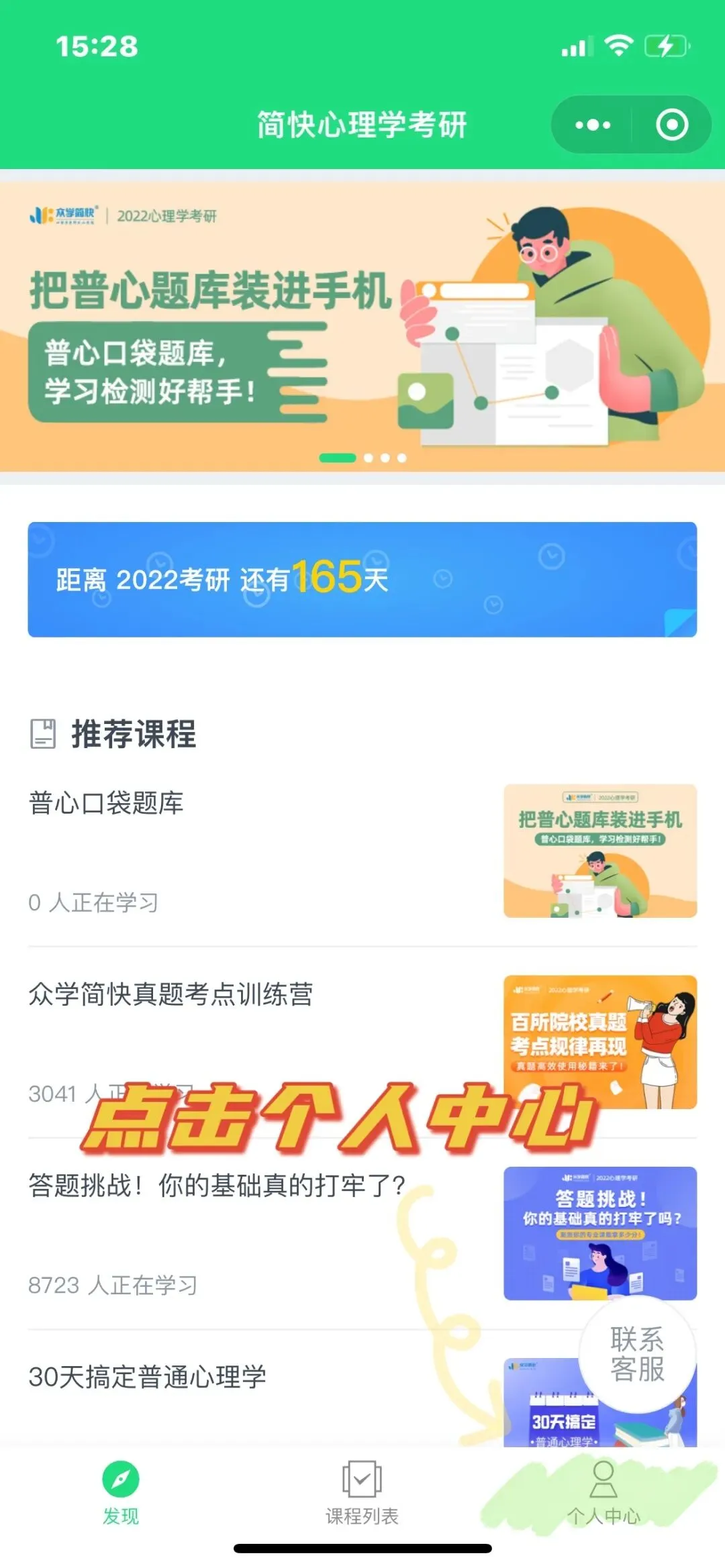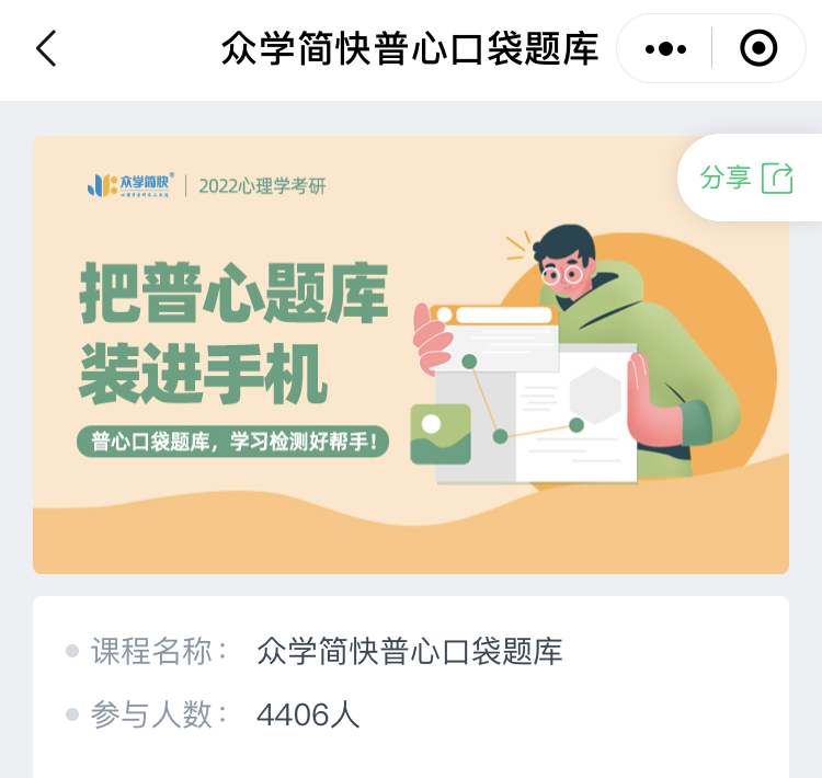 ①点击拼团成功页面“去使用”按钮,扫描小程序码,或微信搜索“简快心理学考研”小程序均可进入小程序题库;