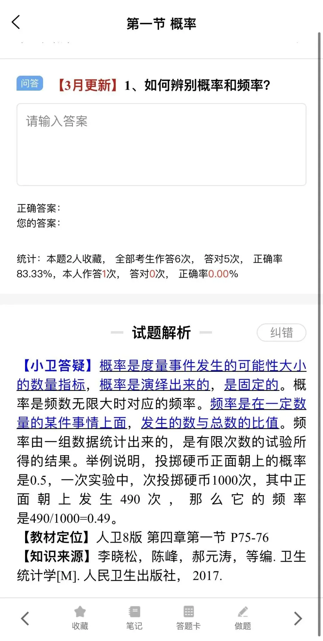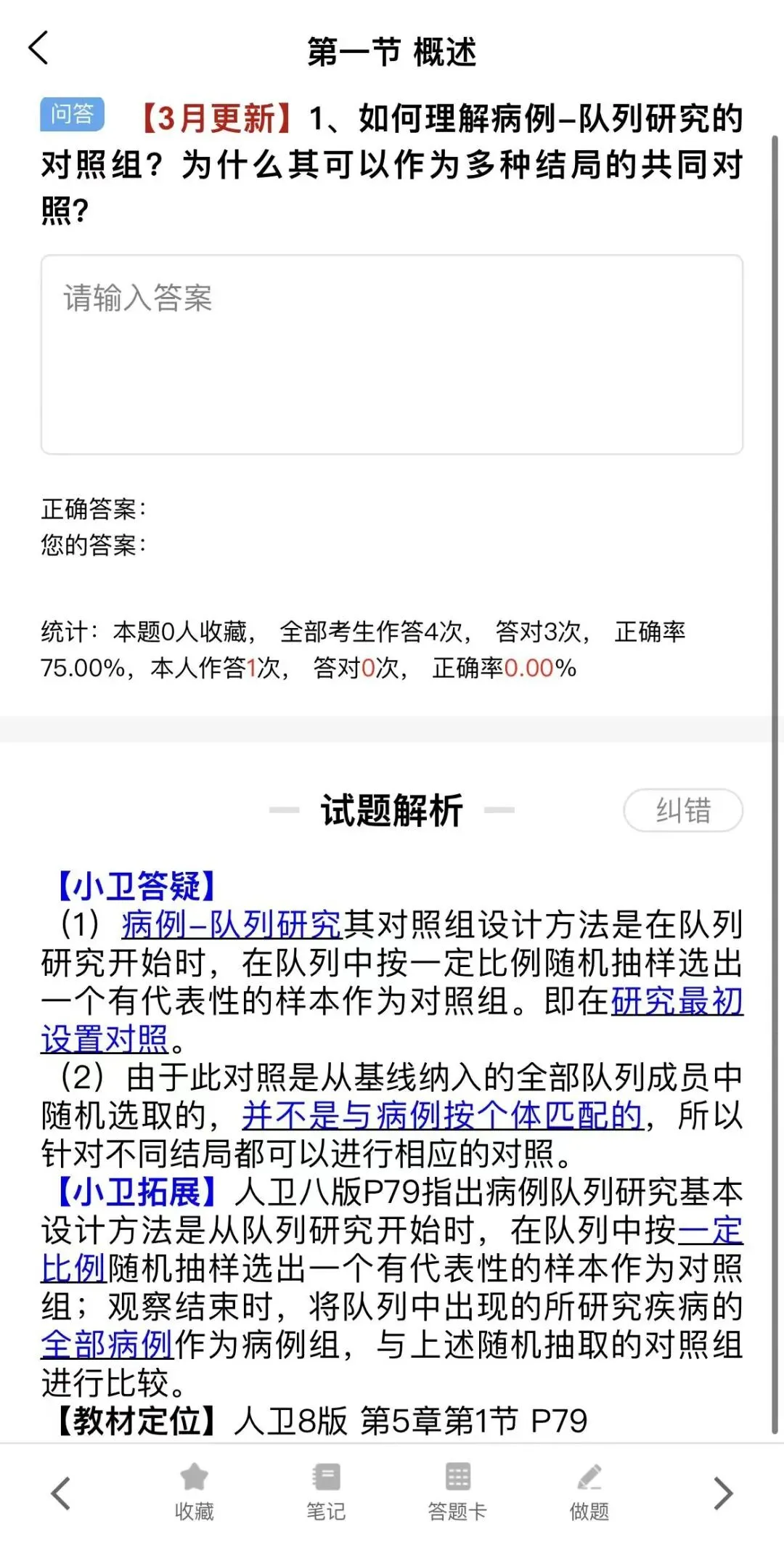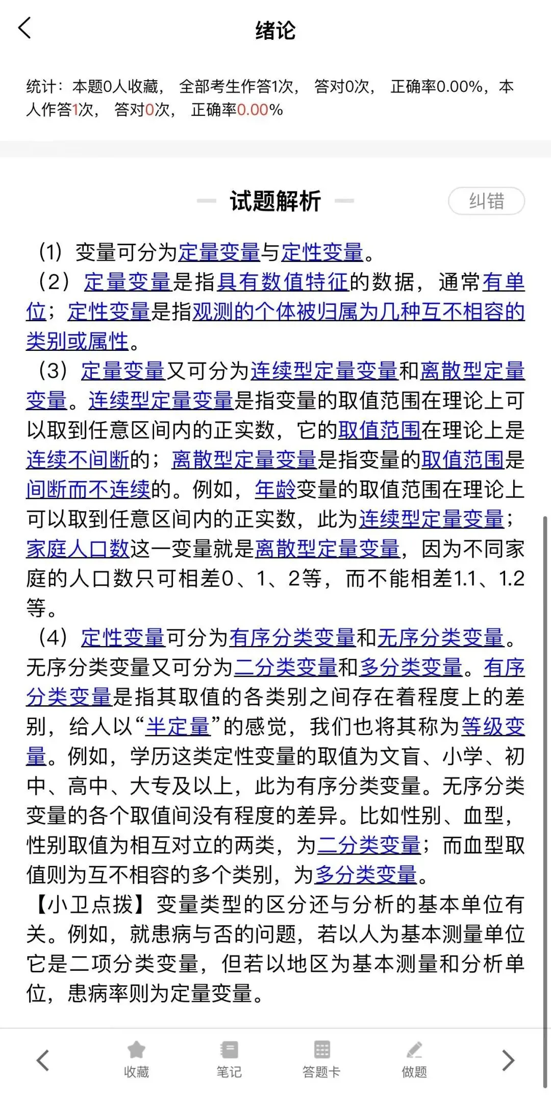 卫灿公卫研习社网校题库还设置了纠错功能,如果你对答案或解析有疑问,点击纠错,提出疑问,我们的答疑老师将进行核实,如果确实有误,我们会及时更新题库哦。