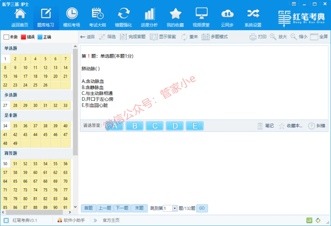 巅峰特训云题库电脑版是一款相当优秀的专业化考试题库系统,巅峰特训云题库官方版功能全面,具备了建工类、财会类、医学类、资格类、金融类、国考类和其他类七大模块题库。一建、二建、公务员、教师资格证等都可,内置大量试题以及大量错误分析和题目解析功能,题目种类多,可以满足不同行业的需求。软件也是不需要安装的,打开即用,小e随便选择一个科目。3.红笔考典:
