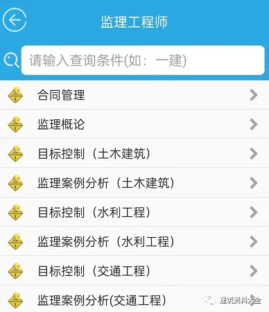 建筑工程、财务会计、从业资格、医药卫生、公务员、学历类、职称英语六大类题库;【一级建造师】、【二级建造师】、【监理工程师】、【造价工程师】、【注册建筑师】、【注册消防工程师】、【中级安全工程师】、【注册结构工程师】、【施工员】、【质量员】、【资料员】、【安全三类人员】等,详见下方截图。