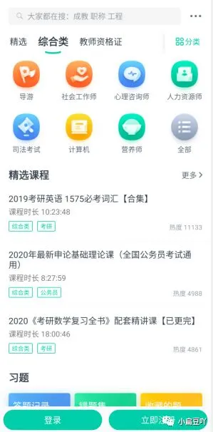 >>>以营养师为例,每类课程均包含【试卷、课程、最新考试资讯】等