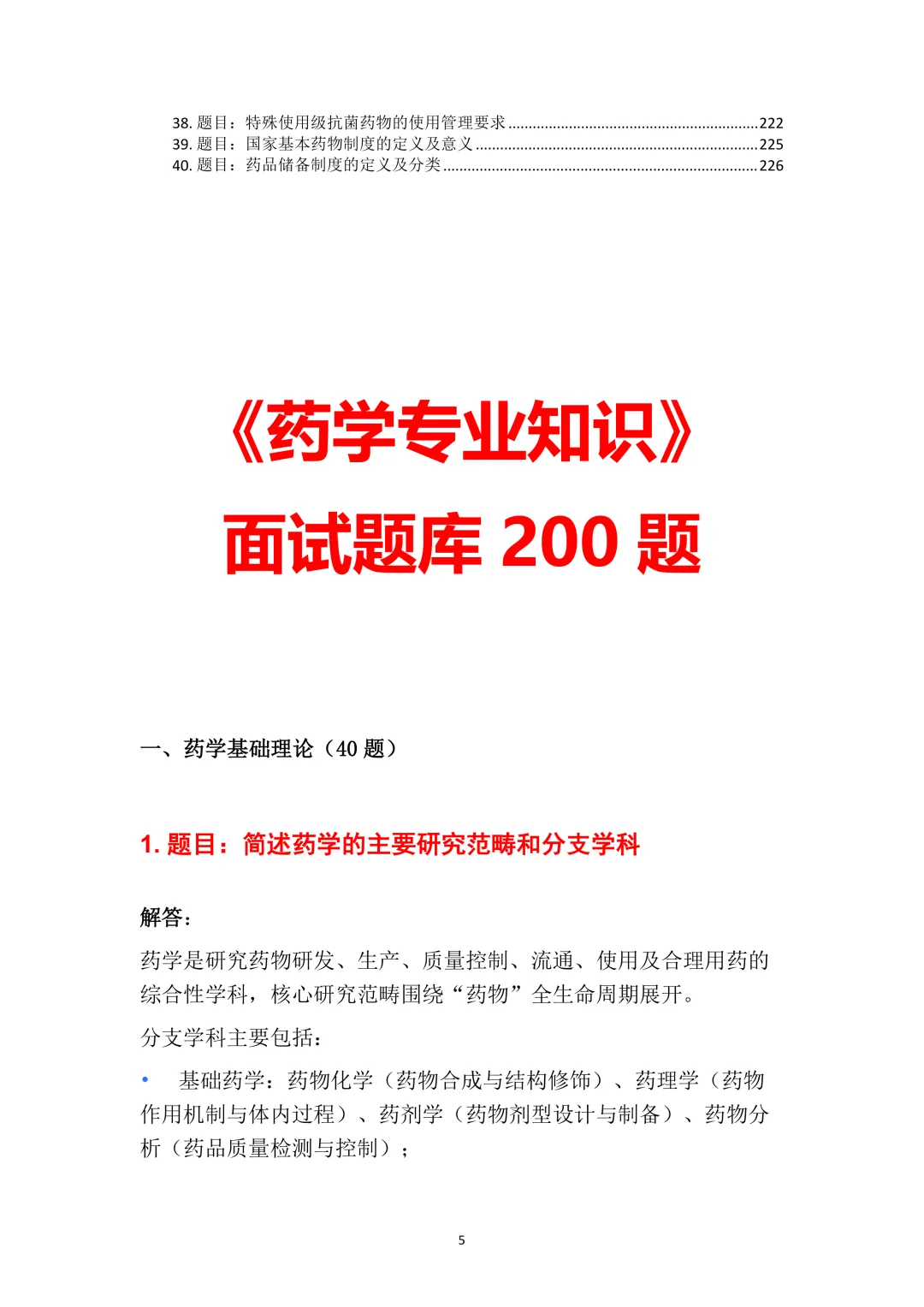 一、药学基础理论(40题)