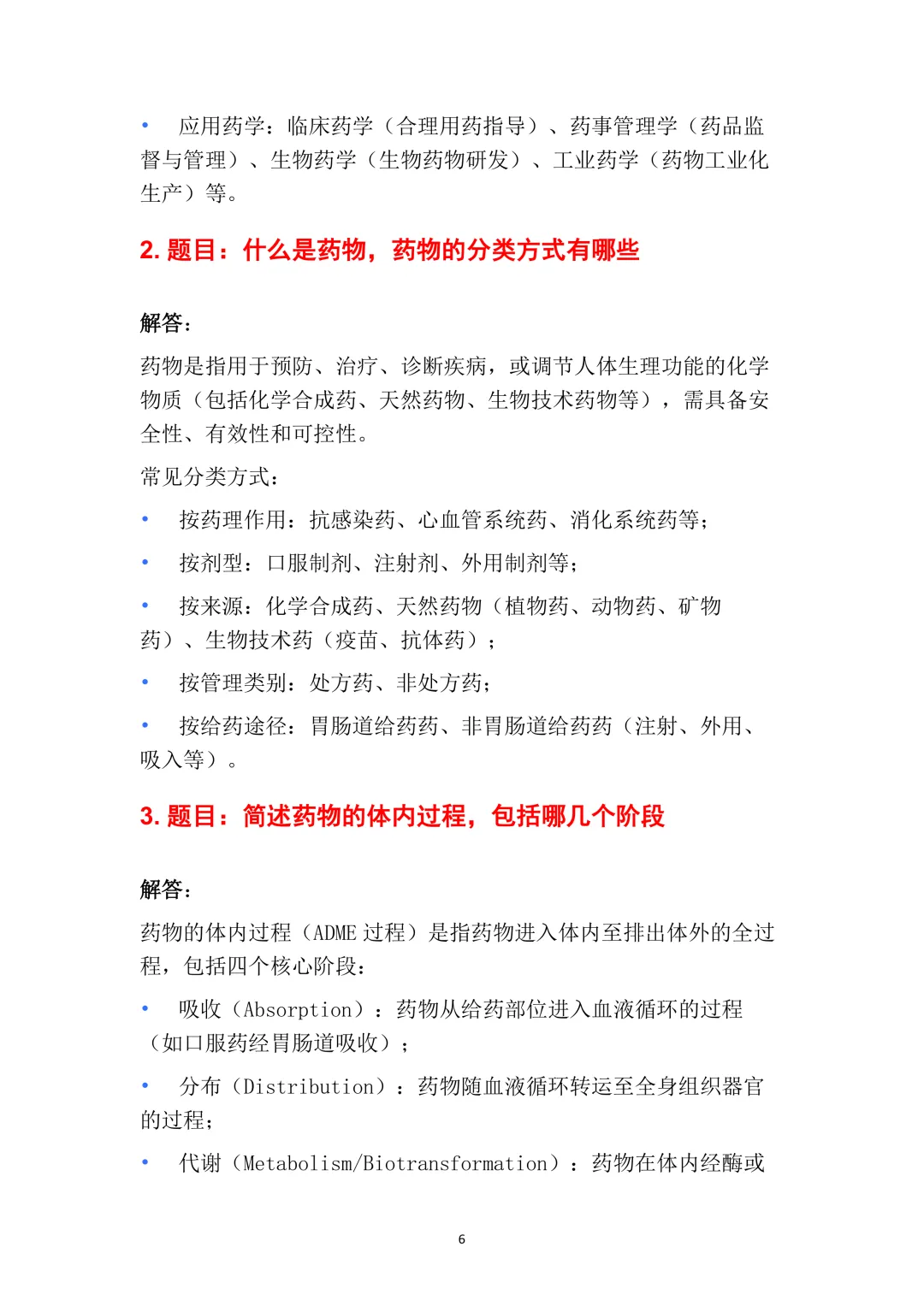 2. 题目:什么是药物,药物的分类方式有哪些