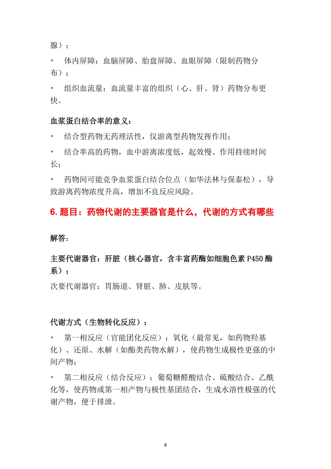 6. 题目:药物代谢的主要器官是什么,代谢的方式有哪些