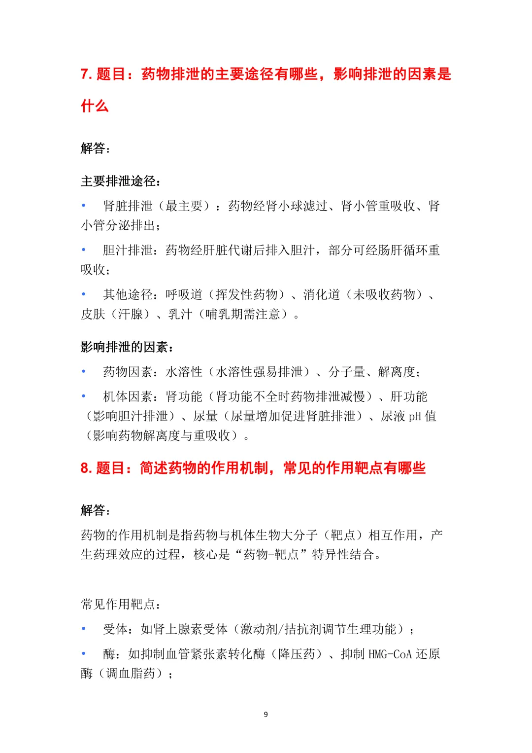 8. 题目:简述药物的作用机制,常见的作用靶点有哪些