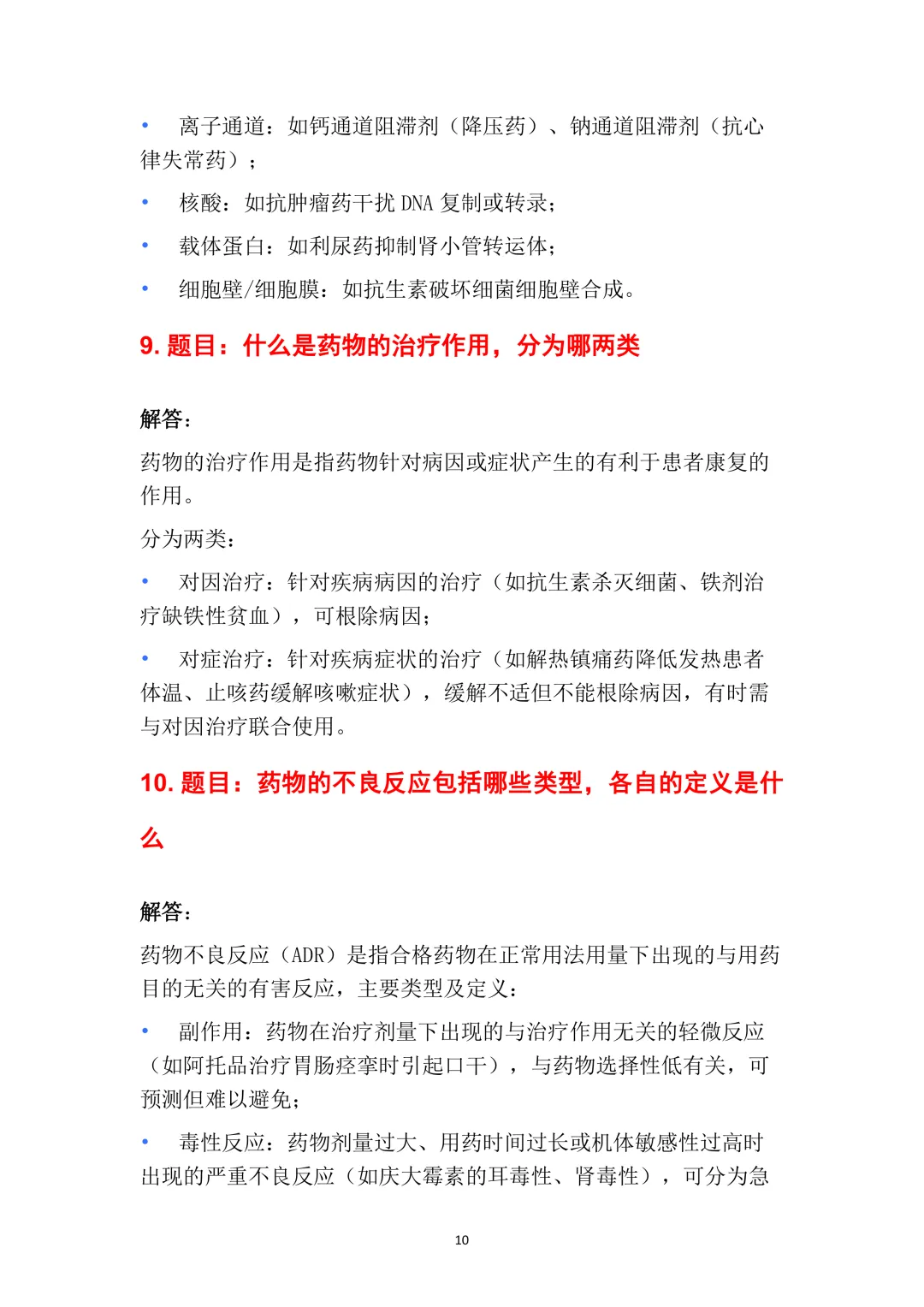 10. 题目:药物的不良反应包括哪些类型,各自的定义是什么