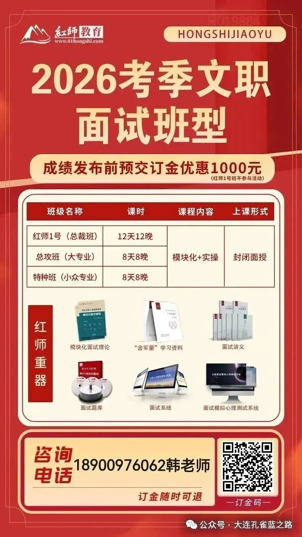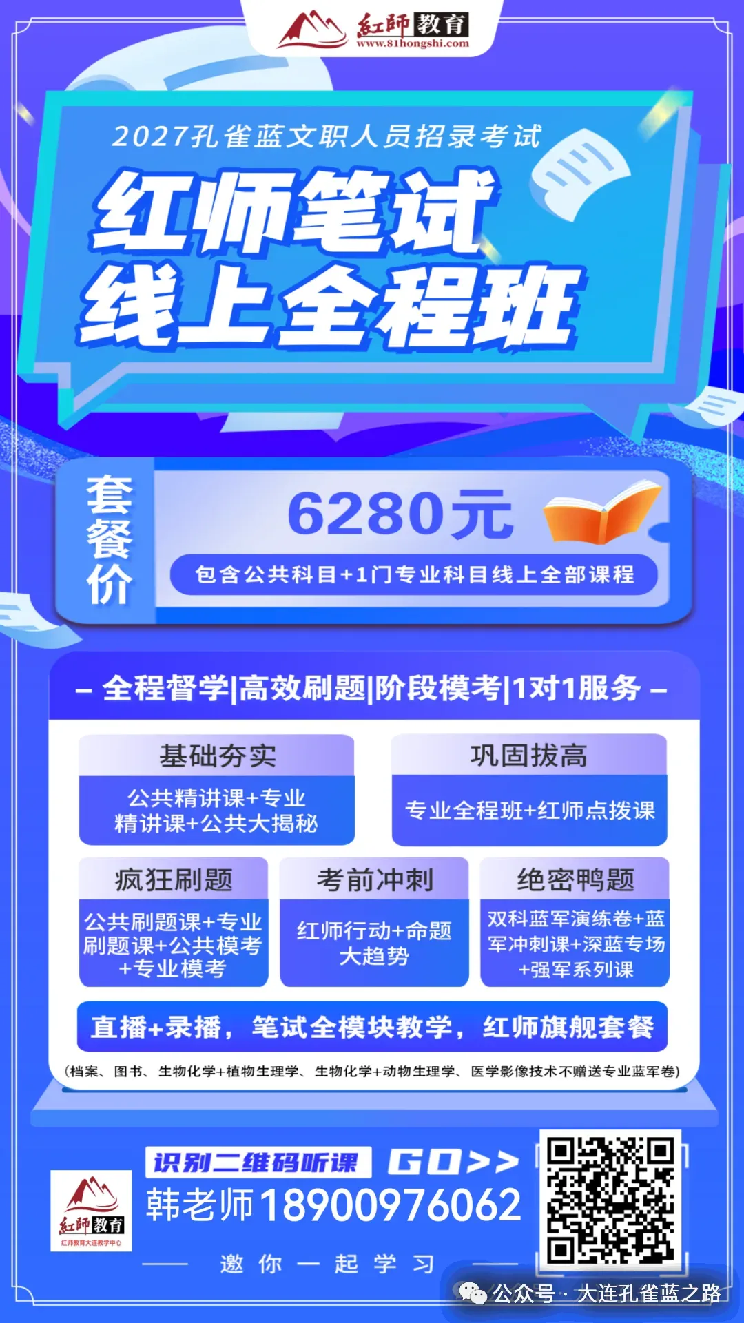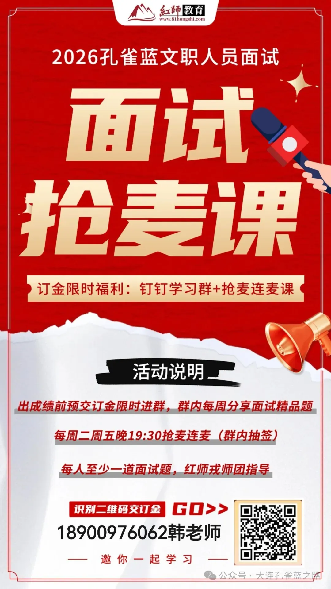 红师教育专注于文职培训8年,承训了大量笔试和面试的学员。备考遇到任何问题可以联系红师教育大连教学中心韩老师。每年所带学员都有上岸,为您1对1免费解答!