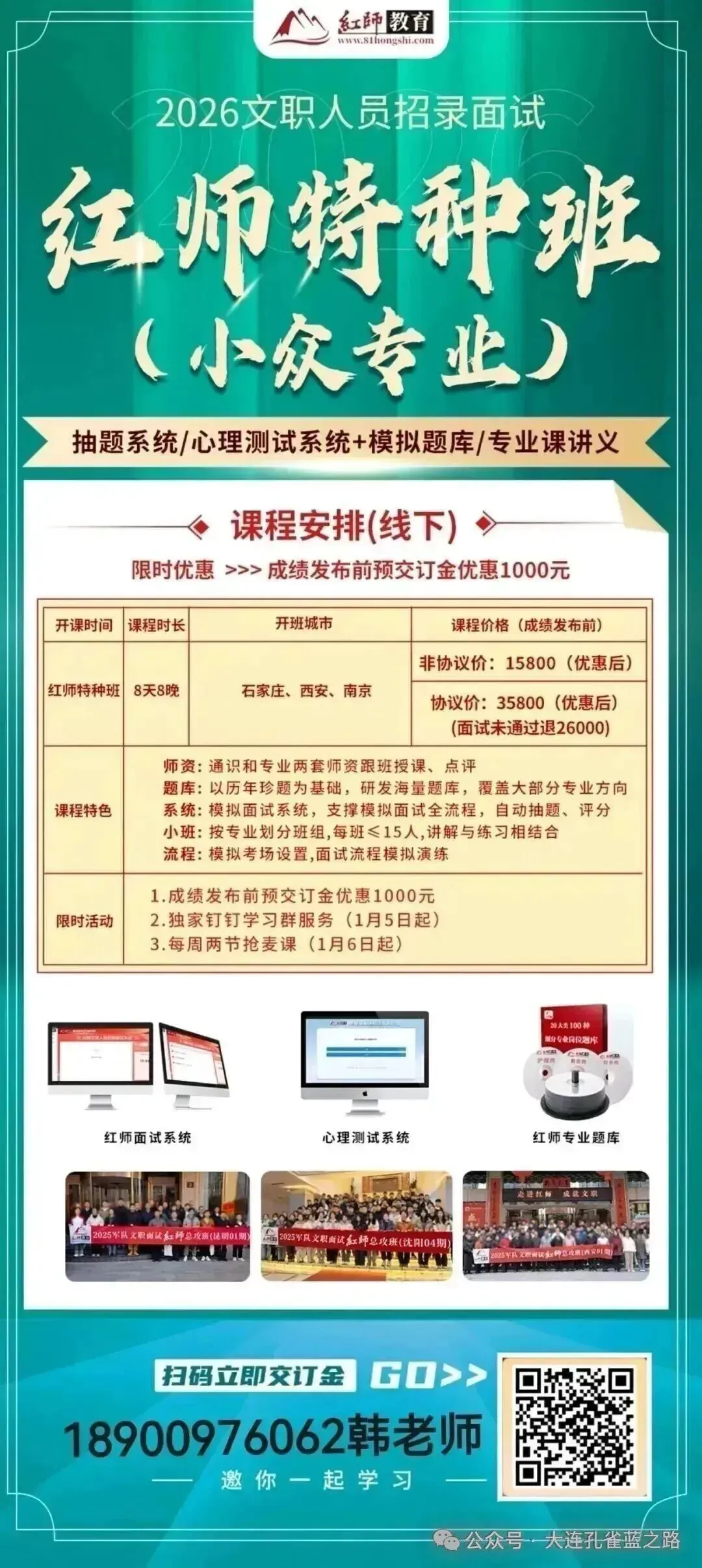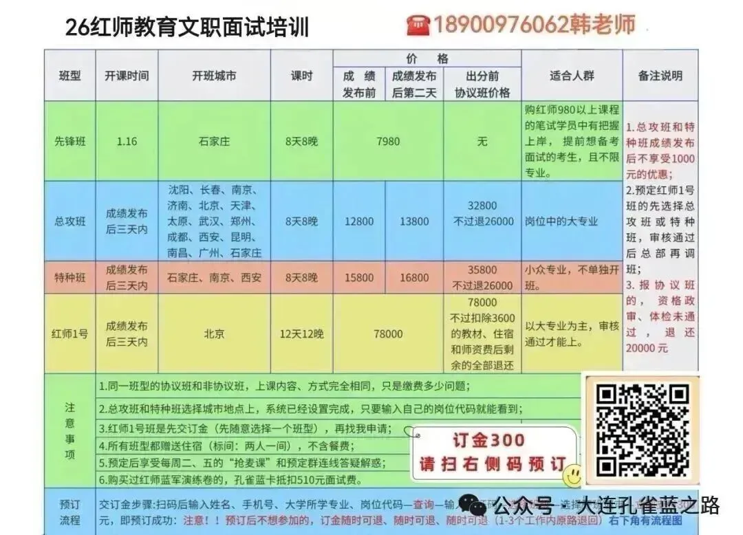 ⚠️请务必扫韩老师发的订金码,填上姓名、电话和岗位代码(2026开头),选择上课城市,直接支付就是预定成功了。才能确认为我的学员,提供后继服务!!!