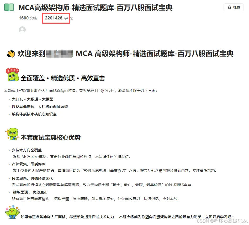 220W字详细介绍高级架构师精选面试题库-百万八股面试宝典!