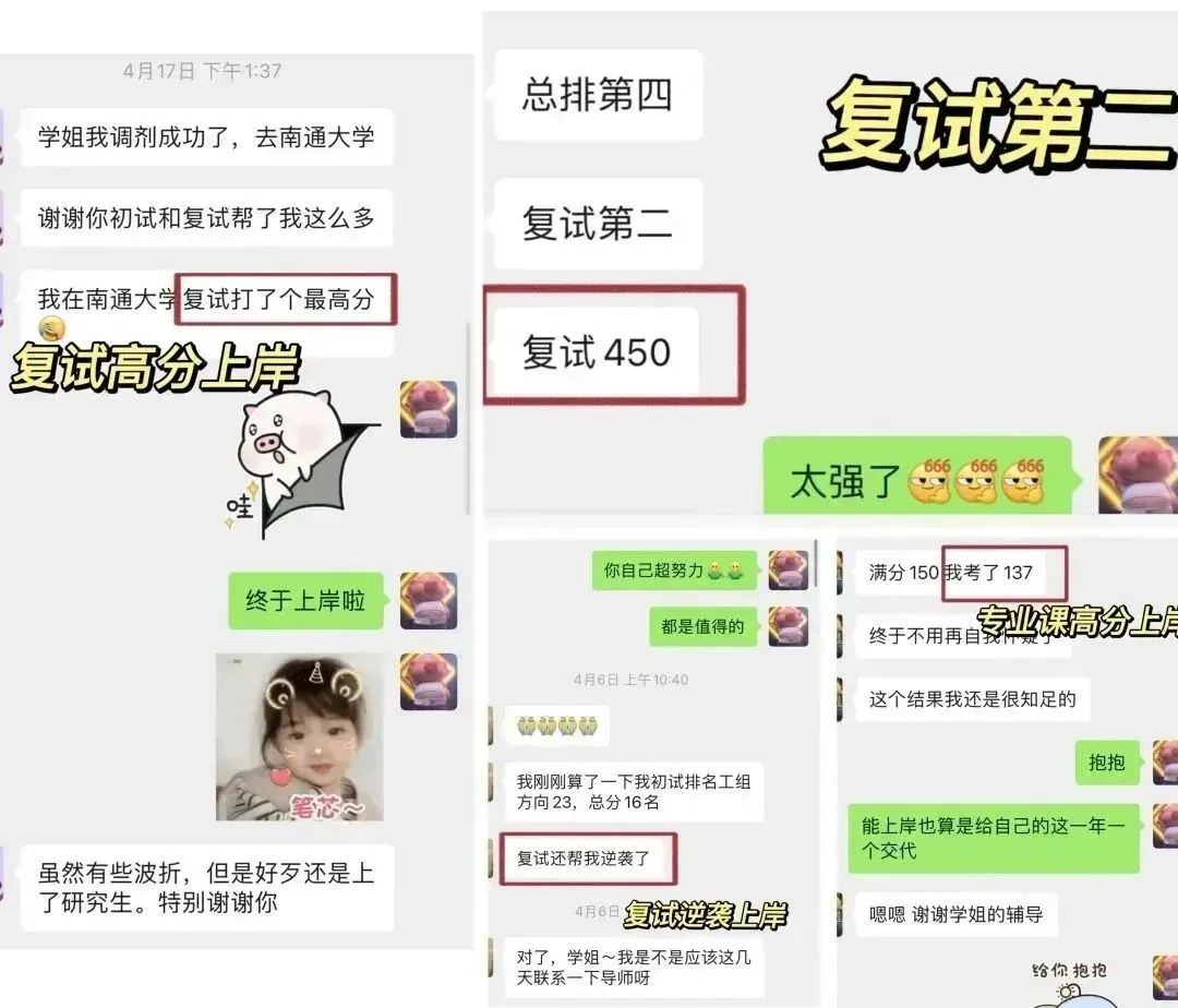 复试成绩一般占据总成绩的40%—50%,是同学们提高排名的重要环节!往年也有许多同学初始成绩并不理想,但进入复试之后面对老师的问题和知识点的理解应对自如,最后成功逆袭提高综合排名!