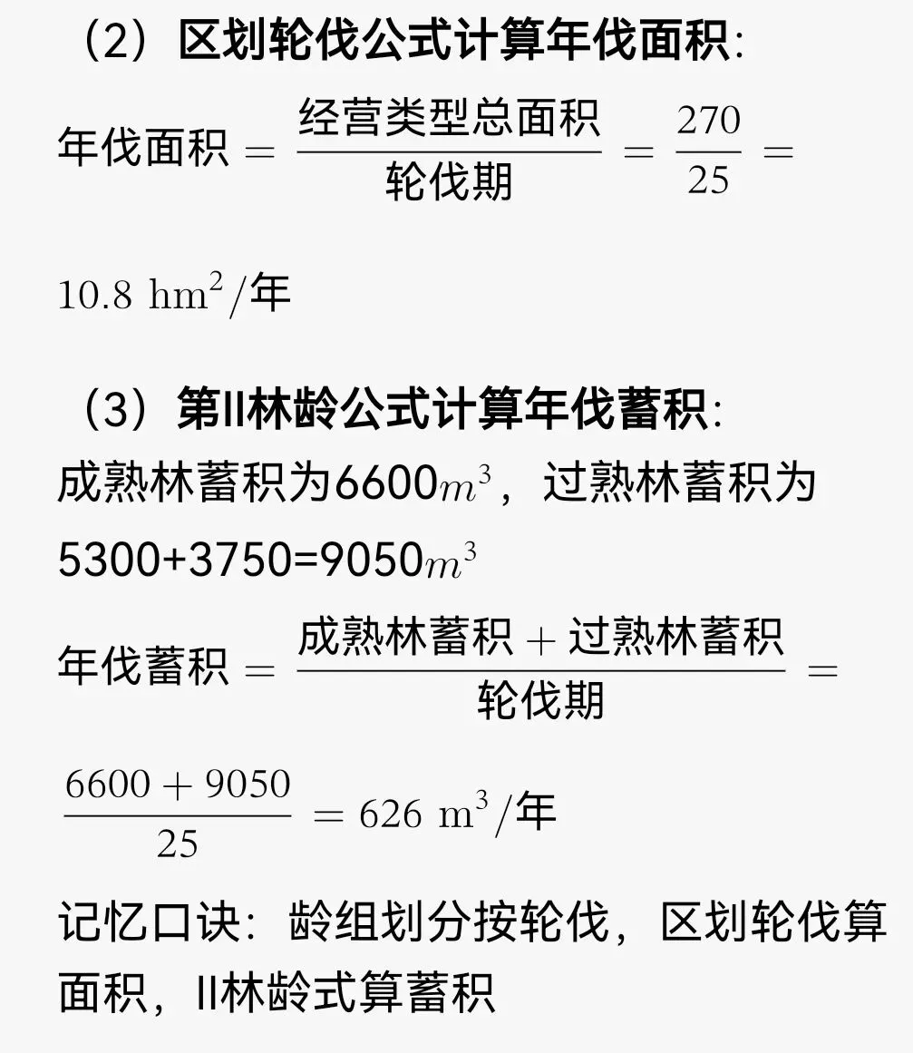 记忆口诀:总年伐量含四类,主伐间伐加补充