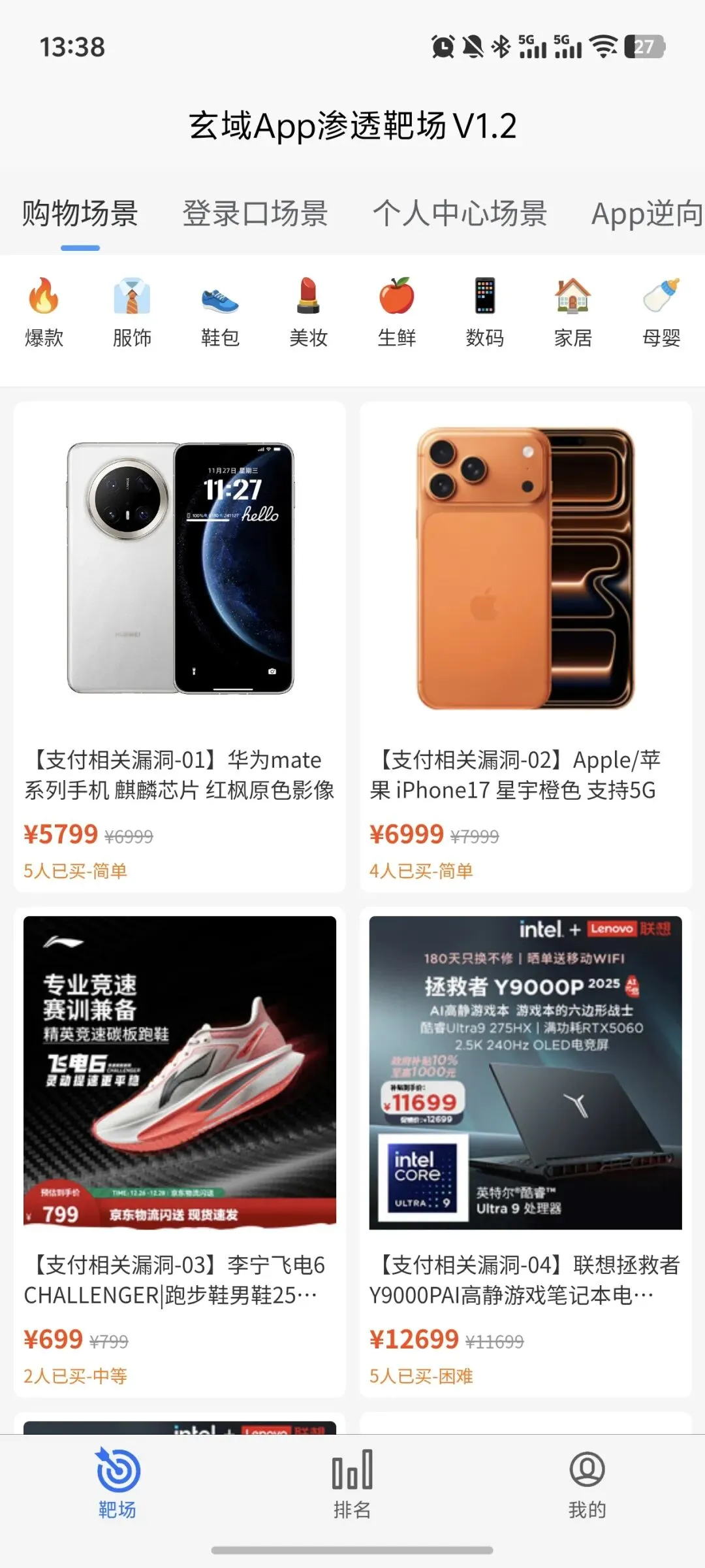 购物场景、登录口场景、个人中心场景、App逆向场景下的漏洞挖掘等等实战环境。