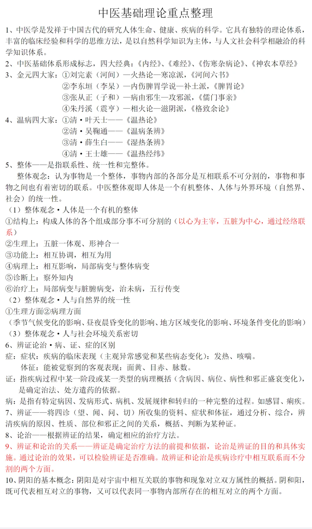 中医基础理论重要知识点