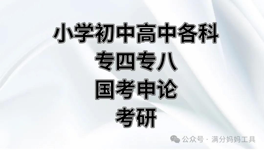 小学初中高中各科,儿童绘本电子书,专四专八,考研,省考公务员,国考申论,普通话考试,英语口语,中级经济师,小学古诗,小学绘本,等学习考试资料.