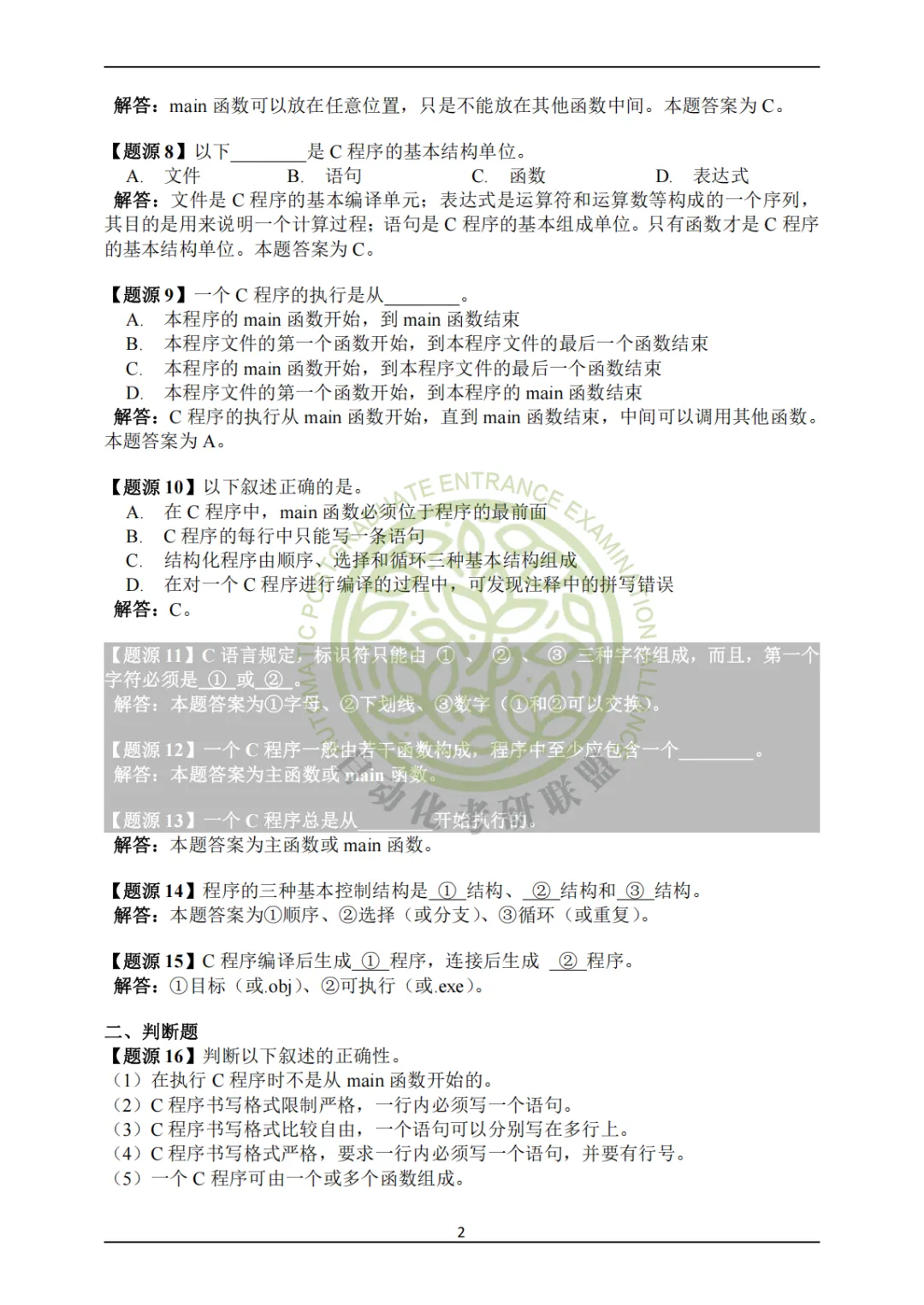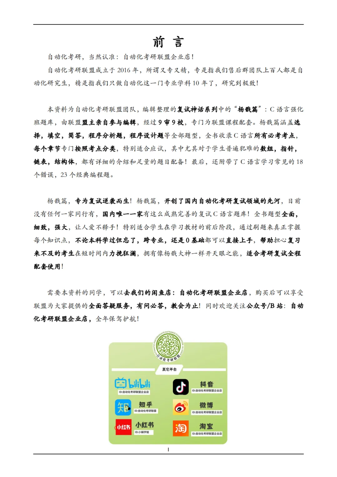 26届自动化考研复试《强化班C语言题库》(杨戬篇)甄选部分①
