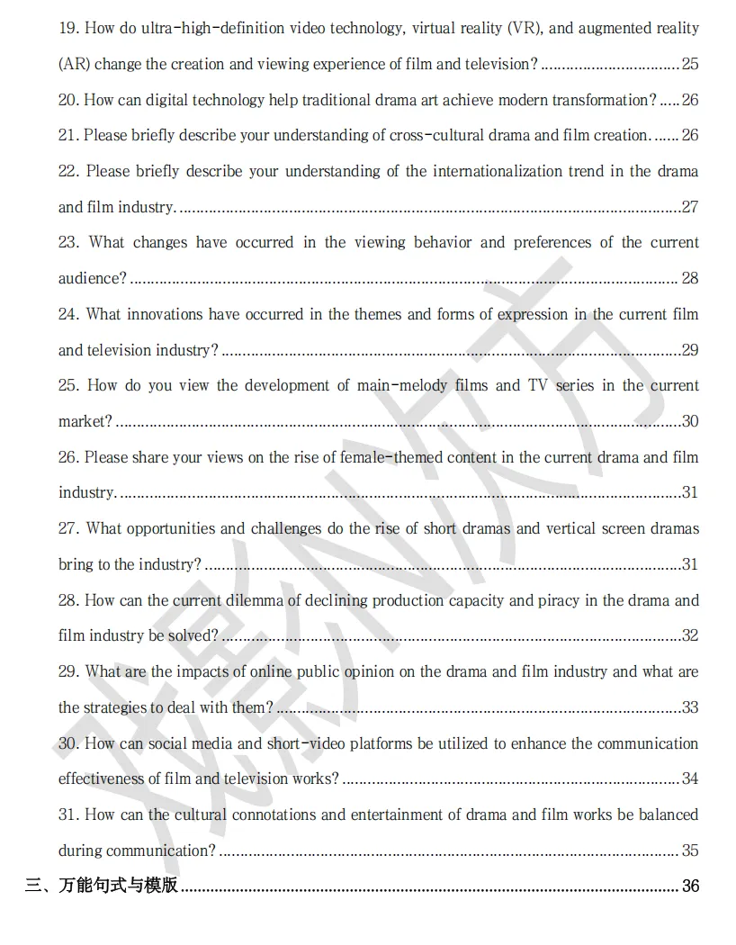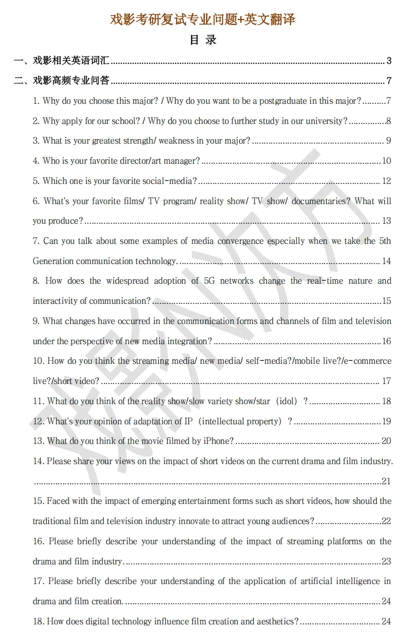 2️⃣戏影专业复试高频专业问答,涵盖30+题目,基本能覆盖到复试考场上能被问到的各种专业问题。