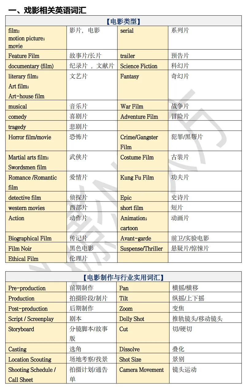 (2)电影制作与行业实用词汇;