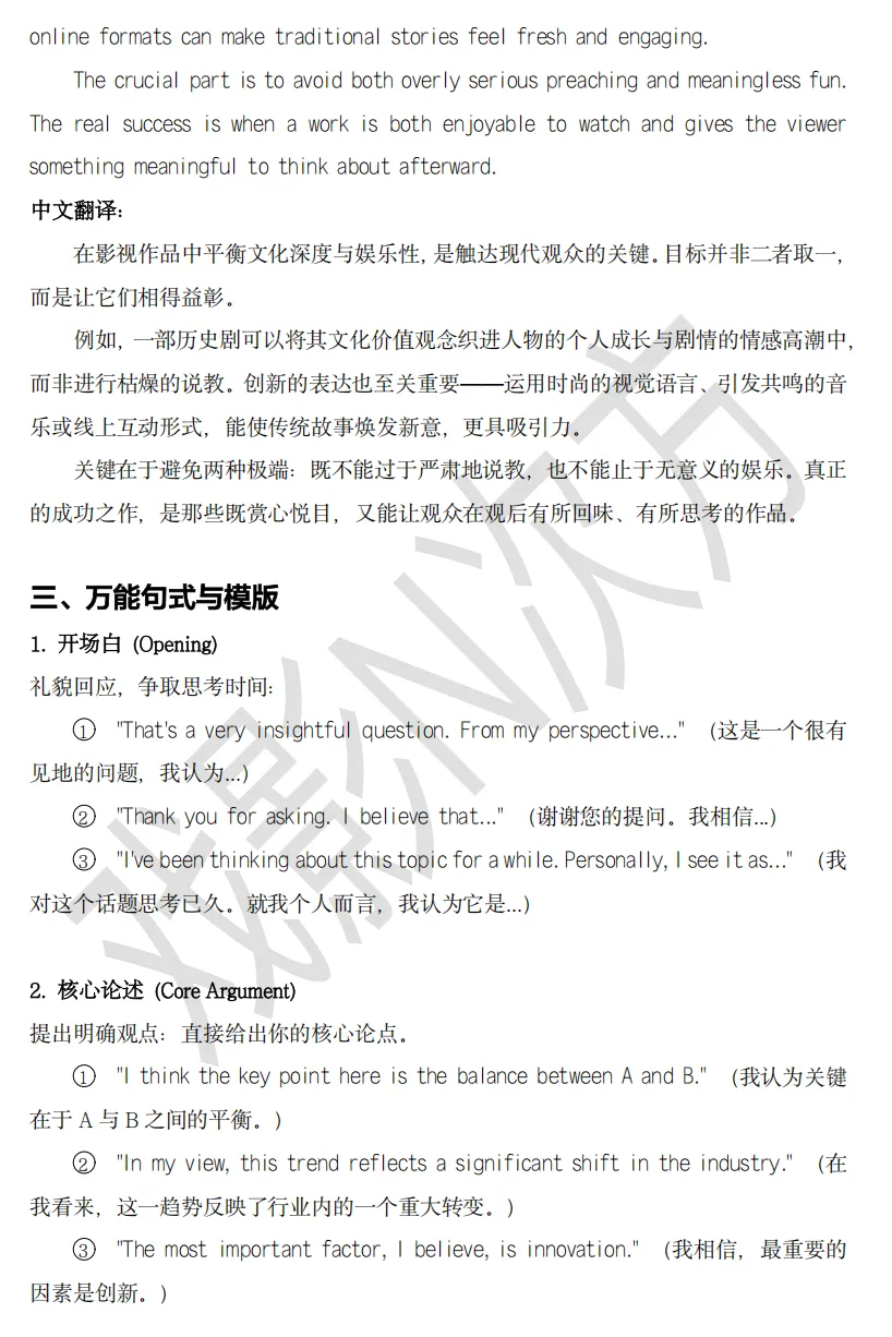 3️⃣万能句式与模版。实在没时间了可以背一背万能句式。