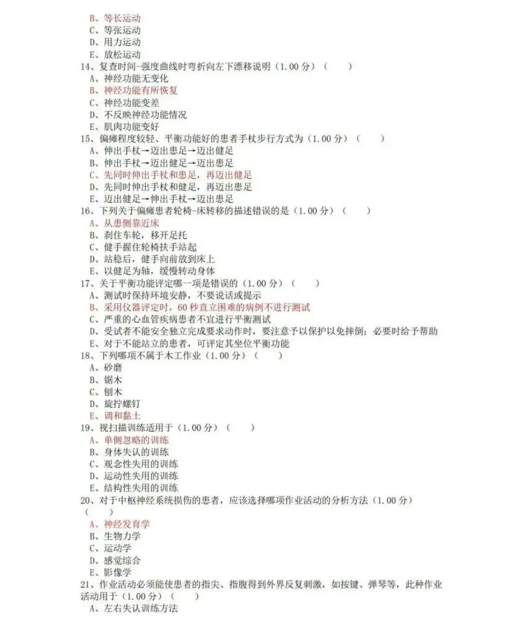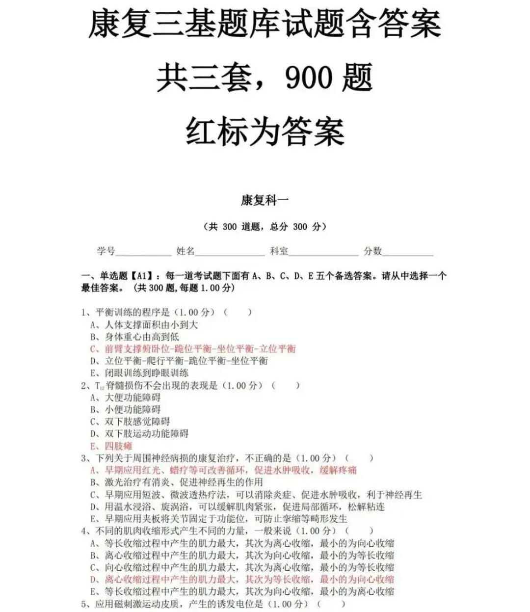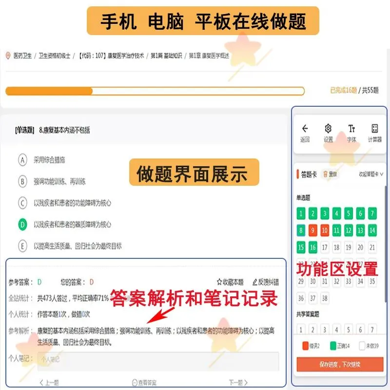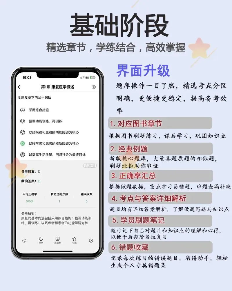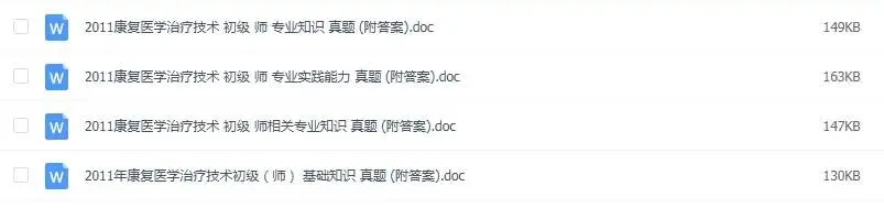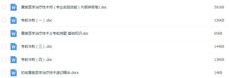 官方正版题库,一个专业代码级别包含四科:基础知识,相关专业知识、专业知识,专业实践能力,为了能让这么好的题库,能够帮助更多的人,所以这次设置了一个超低价的学习机会...原价180元的题库,现在,仅需19元,即可获取题库,即将恢复原价180元! #特别提醒1:所有购买的伙伴,可以免费得到以下九大超值赠品(仅仅是赠品已经是值回这个价格了):赠品一:历年康复考证真题汇总(卫生专业技术资格考试真题,不对外公布,参考价值极大,部分带答案部分不带答案。但是,所有考试点书上都能找得到,有的试题就是教材上的原话。真题、教材和知识点是考试通过的三大法宝。真题可以使您真实感受考试环境和相关考点,每年真题的考点重复率很高,甚至部分题目完全一样!真题在手,考试不愁!)赠品二:康复资格考试高频必背考点精华总结(5份,上千个精华考点总结)赠品三:医疗卫生招聘康复全新面试高频题库(题本+回答解析,共18份,适作于医疗卫生招聘、事业单位E类、医院招聘等等各医疗专业面试)赠品四:康复三基题库试题含答案(共3套,word电子版共115页)赠品五:康复治疗学专业常考习题集 毕业考试题库(word文档,共37页)赠品六:物理治疗学简答题合集(word文档,共47页)#特别提醒2:前100名购买的再送一套精品资源:康复科精品PPT课件合集(共81份)补充说明:康复考证题库,现仅需19元,即将恢复原价180元。机会不容错过!还赠送十大超值赠品哦!