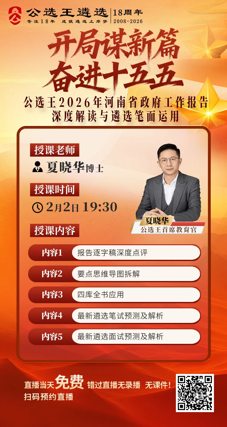 2026年是“十五五”开局之年,几天前发布的《河南省政府工作报告》,是今年河南市直遴选笔试、面试命题的大题库。