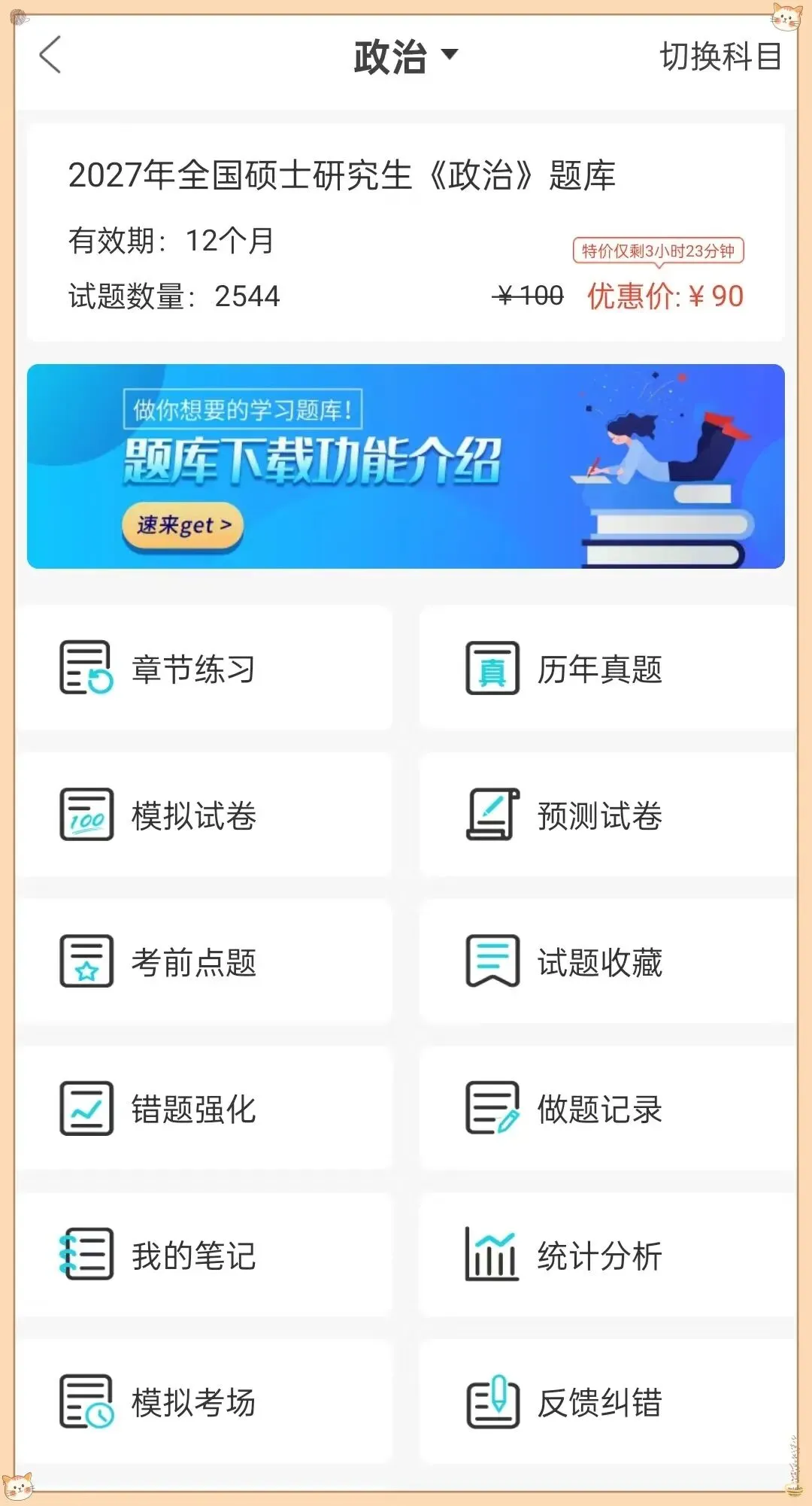 刷题小程序【考研题库精练】9月活动购季卡送月卡!