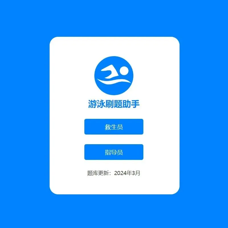 游泳救生员和指导员国职考试,分为理论和实操。为了考生学习方便,免费开发了游泳刷题助手微信小程序(里面有腾讯广告,可联系作者去除)。