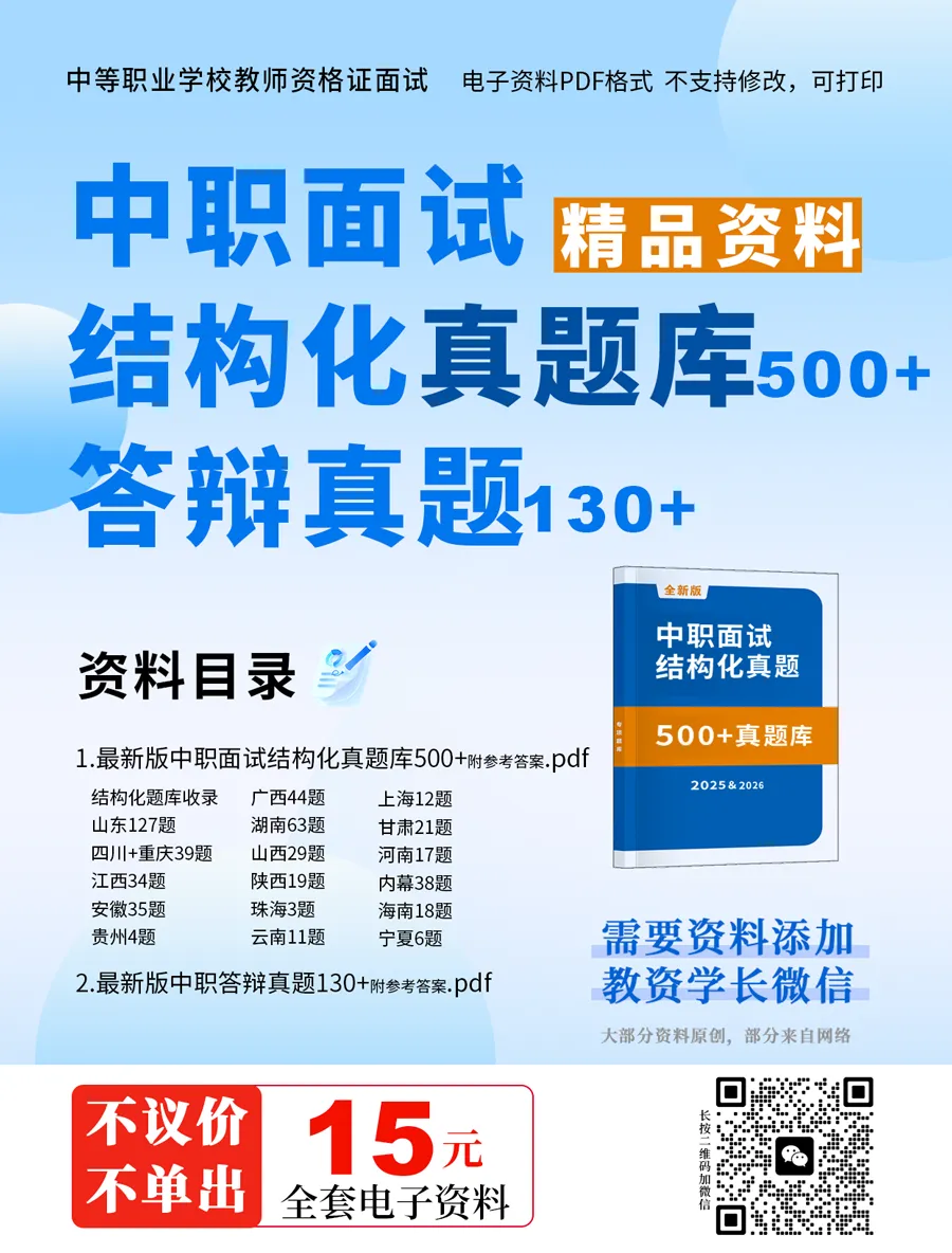 学长整理了最新版中职教资面试结构化真题&答辩真题,均带参考答案。
