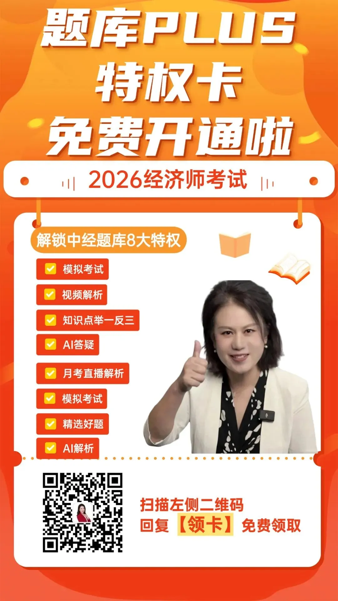 邀请未关注本公众号的好友助力满【4】位即可获得【2026年中经题库plus特权卡】免费开通资格。