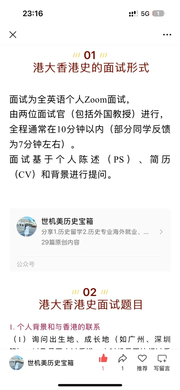 >香港史面试超全题库 攻略来啦
