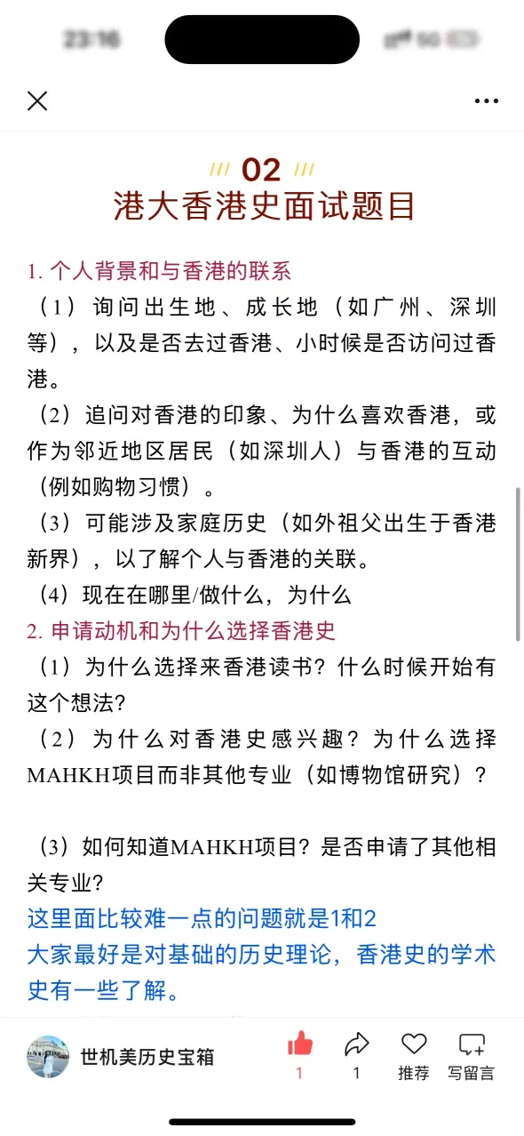 (3)如何知道MAHKH项目?是否申请了其他相关专业?这里面比较难一点的问题就是1和2大家最好是对基础的历史理论,香港史的学术史有一些了解。