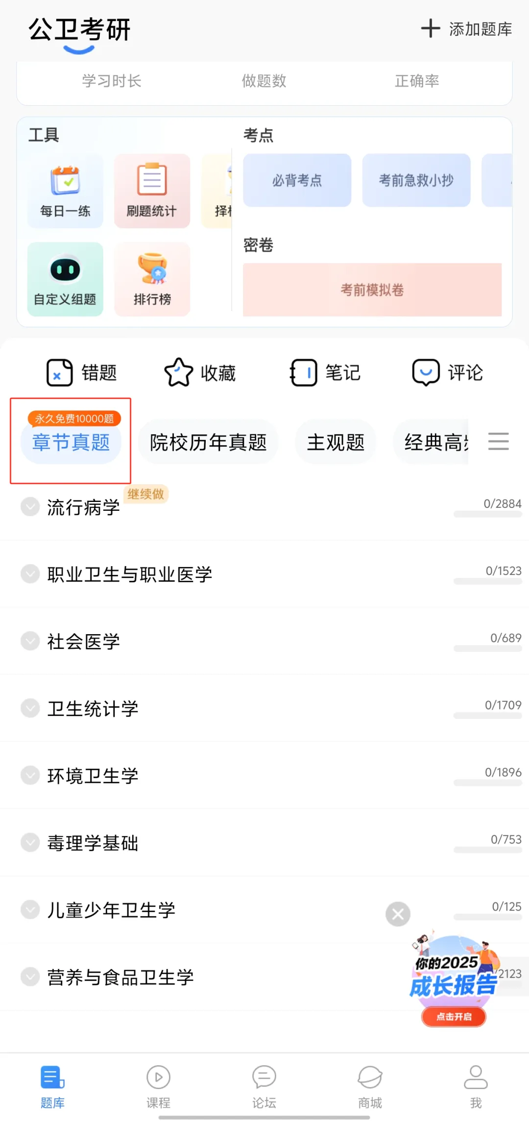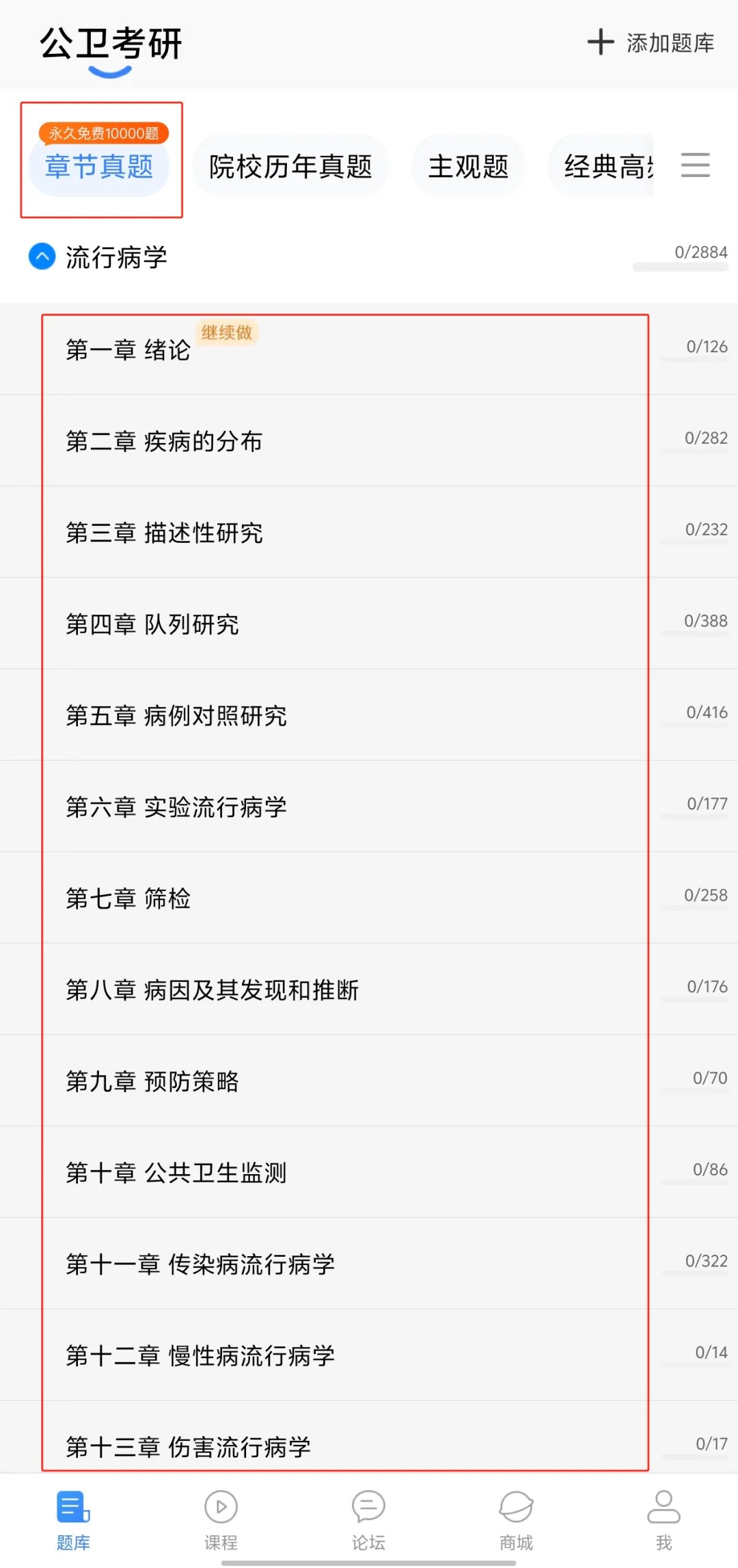蓝基因公卫考研题库,由教研团队汇总整理全国各院校真题,按照学科、章节排序,总共10000+章节真题,精准锁定复习重点!
