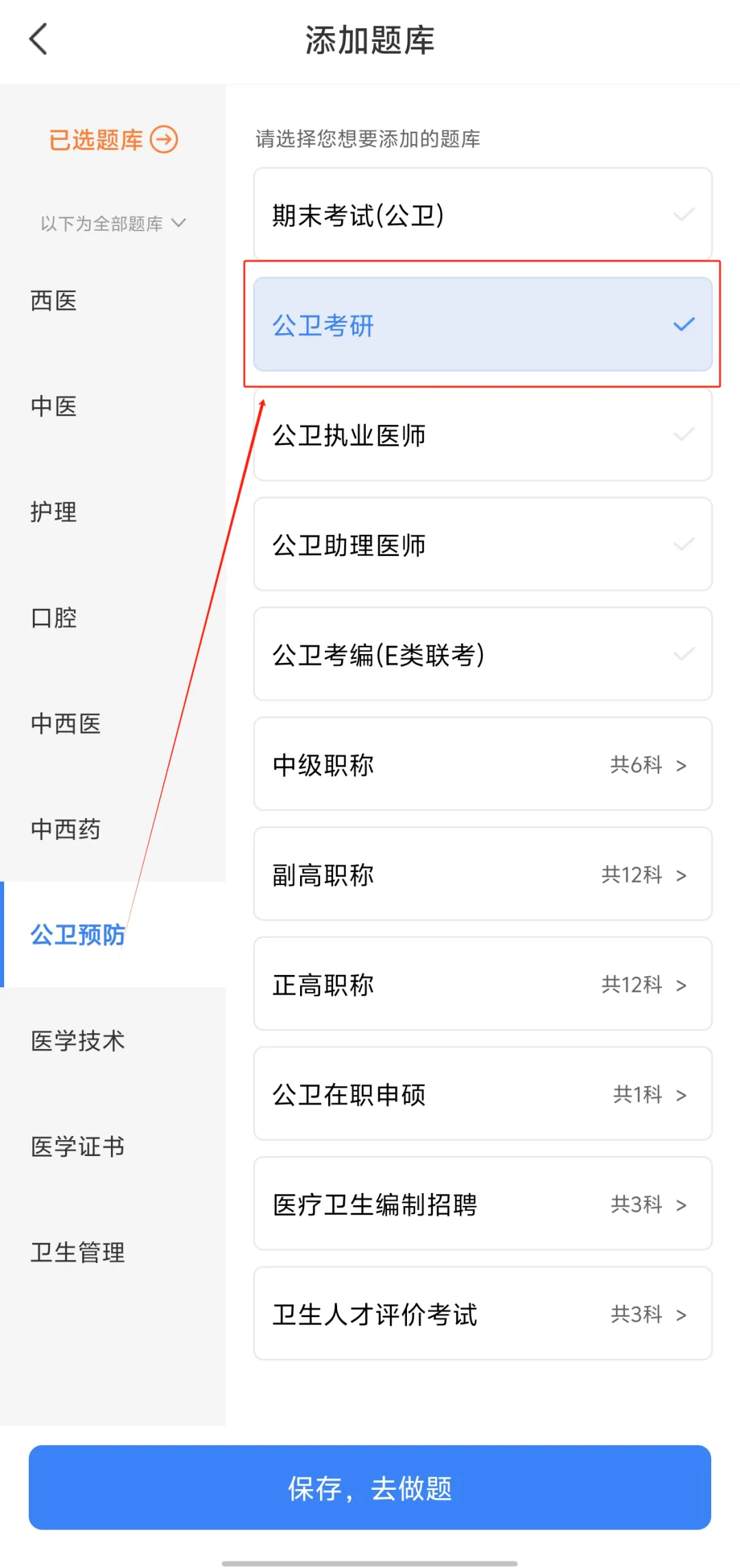 打开蓝基因APP【主页题库-右上角添加题库—选择公卫预防—公卫考研】即可进入题库,分享题库即可免费刷题!