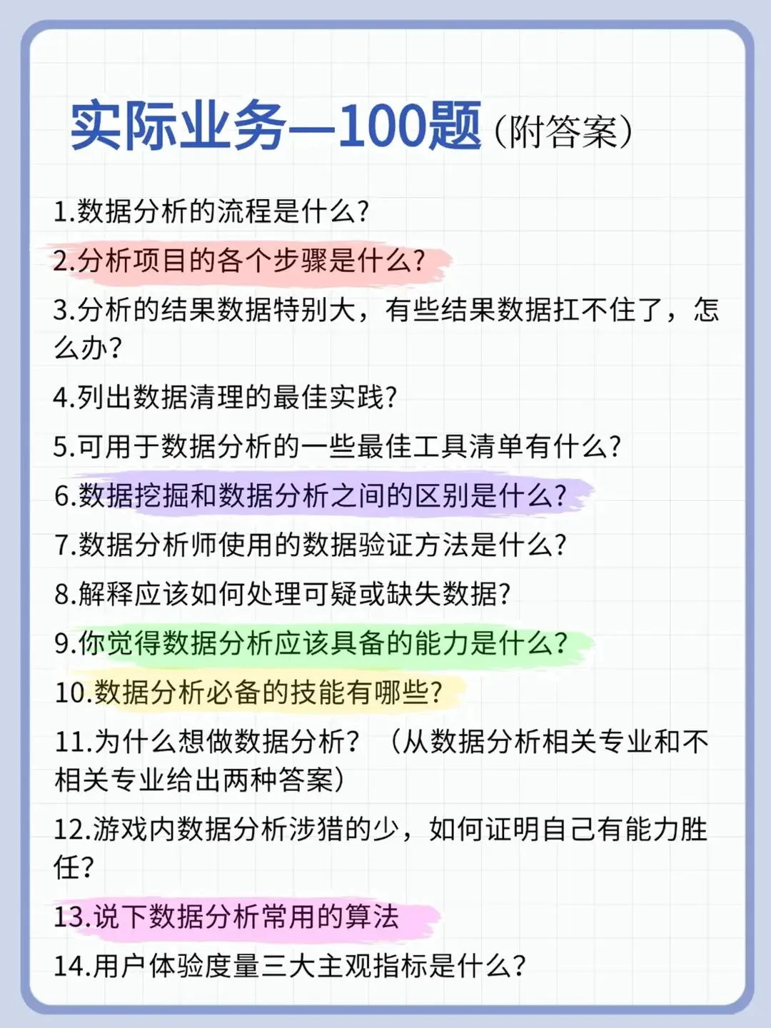 数据分析面试题(附答案)准备面试找工作的小伙伴一定要做好准备,多背背面试题再开始!